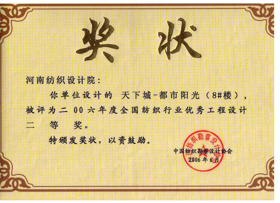 首页 > 关于我们 > 企业荣誉 > 项目奖状