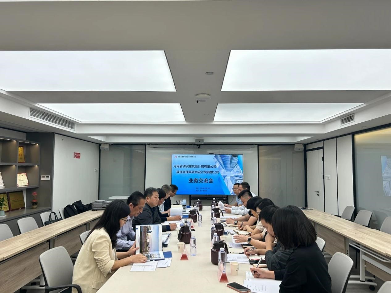 会上,福建轻纺院详细介绍了其在建筑轻纺领域的发展历程、业务发展、组织构架、技术优势以及创新成果等情况。展示内容丰富详实,全面展现了福建院的综合实力和行业经验。河南纺院一行认真聆听,积极思考,获益颇丰。