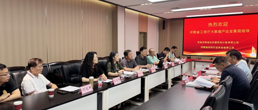 8月4日下午,河南省工业和信息化厅二级调研员周行民率大数据产业发展局副局长王文龙、主任曹文燕,河南省中原数据规划设计研究院院长梁宏一行莅临公司,专题调研“河南省纺织服装大数据产业融合创新中心”建设与发展情况。